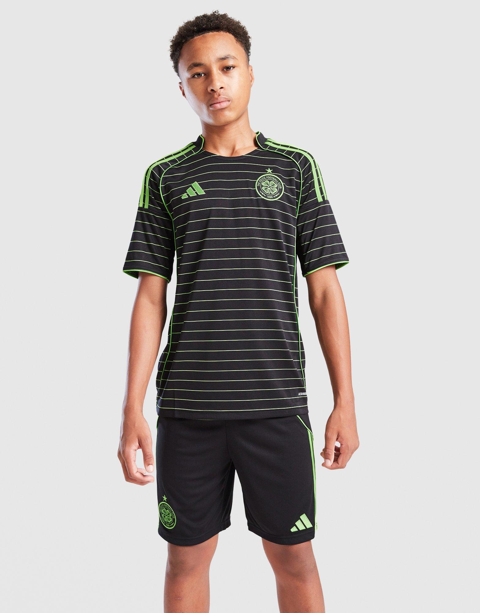 Bring '90s-inspired style to the pitch with these juniors' Celtic 2025/26 Away Shorts from adidas. In black, the regular-fit shorts feature Neon Green piping that's taken from the bumblebee design. Its made from recycled polyester, with mesh inserts and sweat-wicking AEROREADY tech for cool comfort. Finished off with a drawcord waistband, adidas branding and the Celtic crest. Machine washable. | JN4964